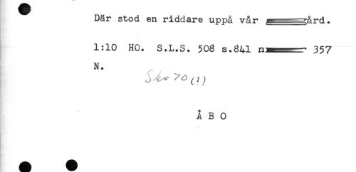 //// Där stod en riddare uppå vår -- ',ård . //// 1:10 HO. S.L.S. 508 s.841 ^ 357 //// N. //// ÅBO ////