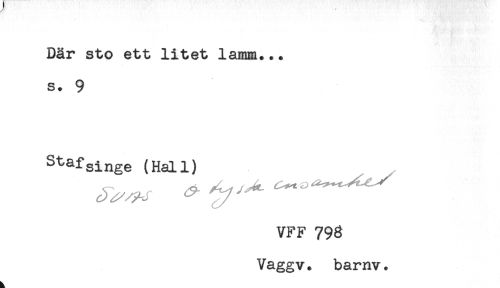 //// Där sto ett litet lamm... //// s. 9 //// Stafginge (Hall) //// VFF 793 //// Vaggv. barnv. ////