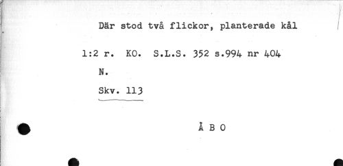 //// K , . j //// Där stod två flickor, planterade kål //// w //// 1:2 r. KO. S.L.S. 352 s.994 nr 404 //// N. //// t //// Skv. 113 //// . //// r //// g!' -' //// ^ ÅBO //// * ////