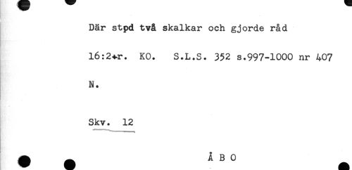 //// ' //// Där stpd två skalkar och gjorde råd //// l6:2+r. KO. S.L.S. 352 s.997-1000 nr 407 //// N. //// Skv. 12 ////
