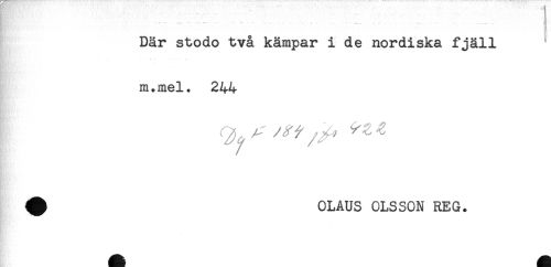 //// Där stodo två kämpar 1 de nordiska fjäll //// m.mel. 244 //// ^ OLAUS OLSSON REG. //// É Ht ^ ////