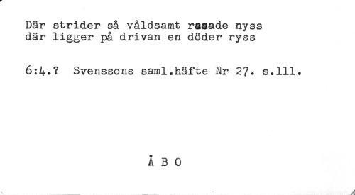 //// Där strider så våldsamt raaade nyss //// där ligger på drivan en döder ryss //// 6:4.? Svenssons saml.häfte Nr 2?. s.lll. //// ÅBO ////