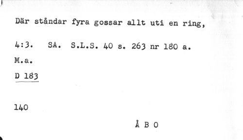 //// Där ståndar fyra gossar allt uti en ring, //// 4:3. SA. S.L.S. 40 s. 263 nr 160 a. //// M.a. //// D 183 //// 140 ////