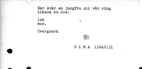 //// Der står en jungfru uti vår ring //// Liksom en ros. //// lek //// mus. //// Övergaard //// U L M A 11642:31 ////