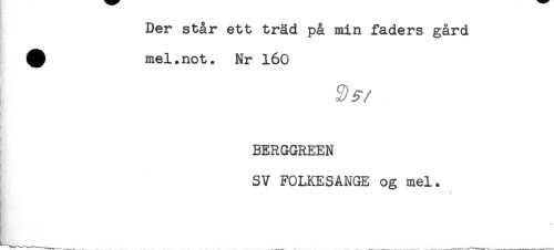 //// [ //// Der står ett träd på min faders gård //// H mel.not. Nr 160 //// BERGGREEN //// SV FOLKESAMGE og mel. //// ^_____ ////