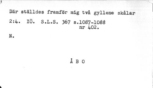 //// Där ställdes framför mig två gyllene skålar //// 2:4. IÖ. S.L.S. 367 s.1087-1088 //// nr 402. //// N. //// ^ //// ÅBO //// ! //// * //// t //// t //// i ////