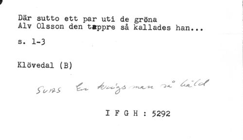 //// Där sutto ett par uti de gröna //// Alv Olsson den tappre så kallades han... //// s. 1-3 //// Klövedal (B) //// I F G H : 5292 ////
