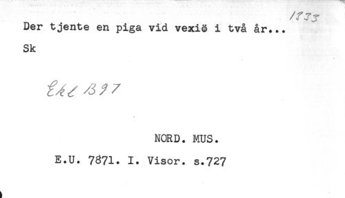 //// Der tjente en piga vid vexiö i två år... //// Sk //// * //// NORD. MUS. //// E.U. 7871. 1. Visor, s.727 ////