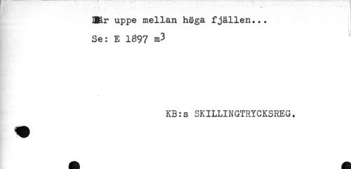 //// EBRr uppe mellan höga fjällen... //// - //// Se: E 1897 m-? //// ^ * //// KB:s SKILLINGTRYCKSREG. ////