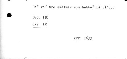 //// Då* va* tre skälmar som hetta* på rå*... //// ^ Bro, (B) //// Skv 12 //// . //// VFF: 1633 //// t' //// ---...... ... ../ <.,____ ...._____ ////