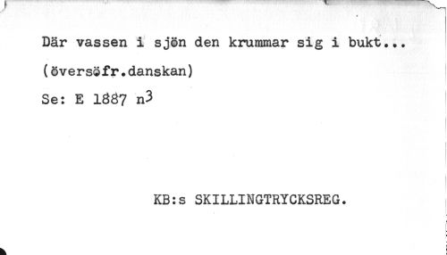 //// * //// Där vassen i sj§n den krummar sig i bukt... //// (översöfr.danskan) //// Se: E 1337 n3 //// ) //// KB:s SKILLINGTRYCKSREG. //// E //// h. - ////
