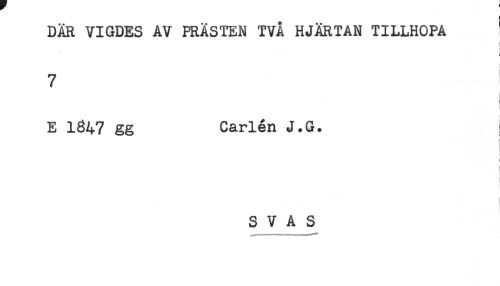 //// DÄR VIGDES AV PRÄSTEN TVÅ HJÄRTAN TILLHOPA ' //// ! //// 7 //// I //// E 1S47 gg Carlén J.G. i //// ) //// ! //// S V A S ////