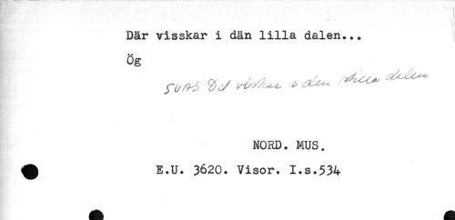 //// -' ' //// Där visskar i dän lilla dalen... //// Og //// - //// NORD. MUS. //// ^ E.U. 3620. Visor. I.s.534 ////