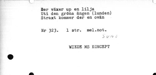 //// Ber växer up en lilja //// Uti den gröna ängen (lunden) //// Straxt kommer der en ovän //// Nr 323. 1 str. mel.not. //// 3 t/ ^ u //// WIEDE MS KONCEPT ////