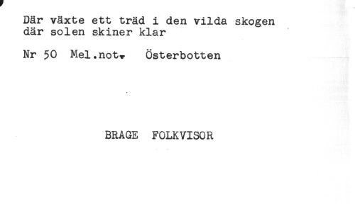 //// Där växte ett träd i den vilda skogen //// där solen skiner klar //// Nr 50 Mel.notv Österbotten //// BRAGE FOLKVISOR ////