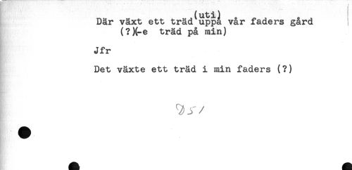 //// Där växt ett träd uppa vår faders gård //// (?)(-e träd på min) //// Jfr //// Det växte ett träd i min faders (?) //// ^ //// /