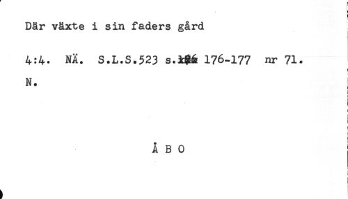 //// Där växte i sin faders gård //// 4:4. NÄ. S.L.S.523 s.3c#6 176-177 nr 71. //// N. i //// ] //// ) //// ! //// t //// ÅBO //// i //// t I ////