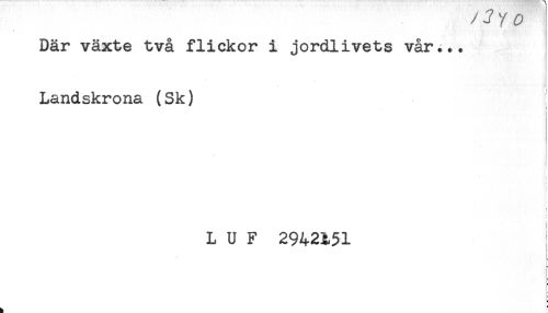 //// / ^ 7 (J //// Där växte två flickor i jordlivets vår.*. //// - //// . //// Landskrona (Sk) //// ! //// i //// } //// L U F 2942i,51 //// : //// - ////