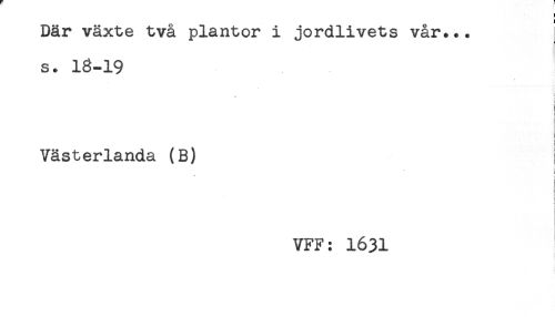 //// Där växte två plantor i jordlivets vår... //// s. 18-19 //// t //// j //// Västerlanda (B) //// i //// i //// i //// ! //// -i //// < //// VFF: 1631 ////