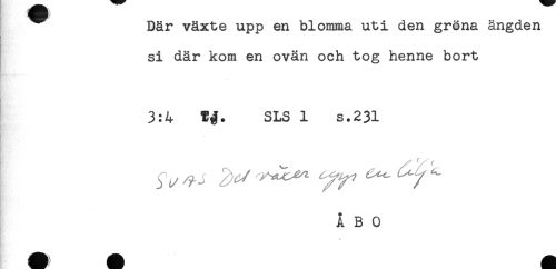 //// Där växte upp en blomma uti den gröna ängden //// ! si där kom en ovän och tog henne bort //// 3:4 Bg. SLS 1 s.231 ////