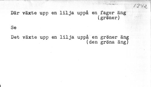 //// /yv^ //// Där växte upp en lilja uppå en fager äng //// (gröner) //// Se //// Det växte upp en lilja uppå en gröner äng //// (den gröna äng) //// < ////