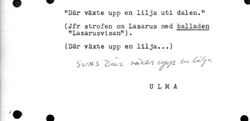 //// "Där växte upp en lilja uti dalen." //// (Jfr strofen om Lazarus med balladen //// "Lazarusvisan"). //// (Där växte upp en lilja...) //// U L M A ////