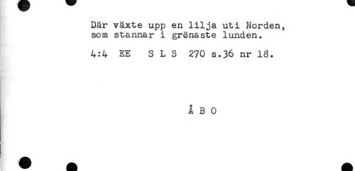 //// Där växte upp en lilja uti Norden, //// som stannar i grönaste lunden. //// 4:4 EE SLS 270 s.36 nr 16. //// ÅBO ////