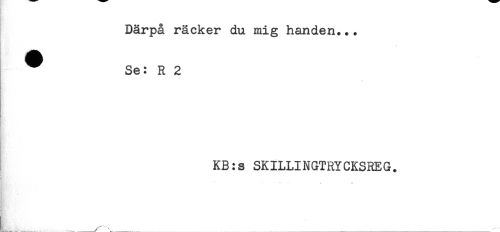 //// Därpå räcker du mig handen..+ //// ^ Se: R 2 //// KB:s SKILLINGTRYCKSREG. //// < ////