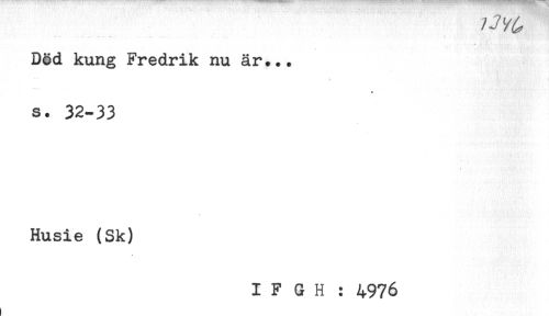 //// * //// Död kung Fredrik nu är... //// * //// s. 32-33 //// Husie (Sk) //// I F G H : 4976 ////