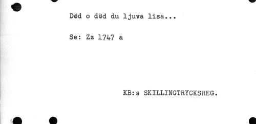 //// Död o död du ljuva lisa... //// Se: Zz 1747 a //// KB:s SKILLINGTRYCKSREG. ////