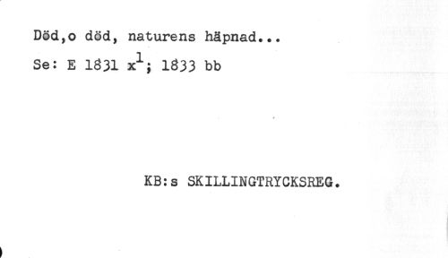 //// Död,o död, naturens häpnad... //// Se: E 1831 x^; 1833 bb //// KB:s SKILLINGTRYCKSREG. //// j ////