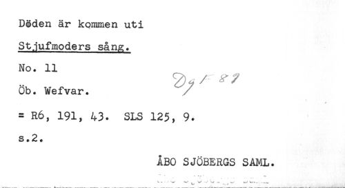 //// Döden är kommen uti //// St.jufmoders sång. //// No. 11 //// Öb. Wefvar. //// = R6, 191, 43. SLS 125, 9. //// s.2. //// ÅBO SJÖBERGS SAML. //// ' *' * " //// ^ T..,..' ////