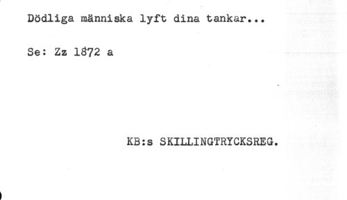 //// Dödliga människa lyft dina tankar... //// Se: Zz 13?2 a //// * //// KB:s SKILLINGTRYCKSREG. ////