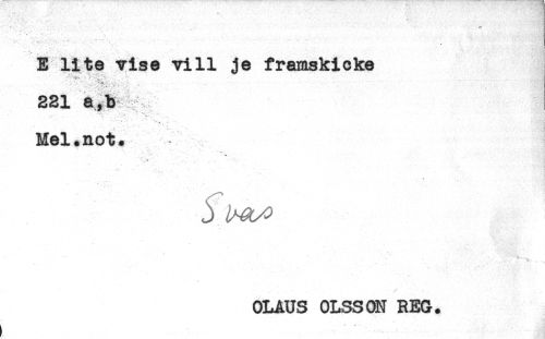 //// *!-. . . - * //// E lite vise vill je framskicka //// -- * . ^ . * . * * //// 221 a,b //// . * - *- ** ^ //// ' ' ' ' ^ * //// Mel.not* //// . ^ < ' - - //// OLAUS OLSSON REG. //// ^ * J ////