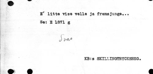 //// t //// - - - - //// .. //// 1; r .- ... //// E" litte vise velie ja framsjunge*.. //// . , - * ..< . ..* . //// 3e: E 1871 g //// KB:3 SKILLINGTRYCKSREG. ////