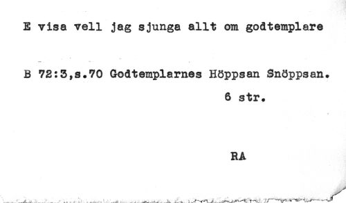 //// E visa vell jag sjunga allt om godtemplare //// B 72:3,a.70 Crodtemplames Höppsan Snöppsan. //// 6 str. //// RA ////