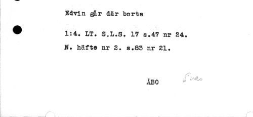 //// Edvin går där borta //// ^ 1:4. LT. S.L.S. 17 s.47 nr 24. //// N. häfte nr 2. s.83 nr 21. //// I . //// ÅBO ////