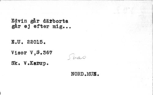 //// t //// Edvin går dätborta //// går ej efter mig... //// E.U. 22015. //// Visor V,3.367 //// Sk. V.Kaixrp. //// NORD.MUS. //// L //// ! //// . < ////