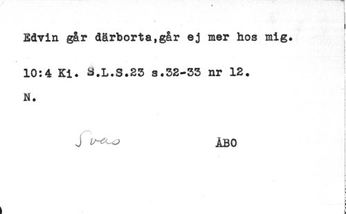 //// _ * - - //// Edvin går därborta,går ej mer hos mig. //// i //// i //// i //// i //// 10:4 Ki. S.L.S.23 s.32-33 nr 12. //// < //// t //// i //// ) //// N. //// i //// ! //// i //// : //// J ÄBO //// ! //// i- ////