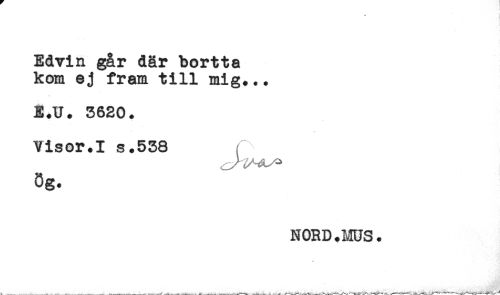 //// Edvin går där bortta //// kom ej fram till mig... //// E.U. 3620. //// Visor.I s.538 //// 8g. //// NORD. ms. ////