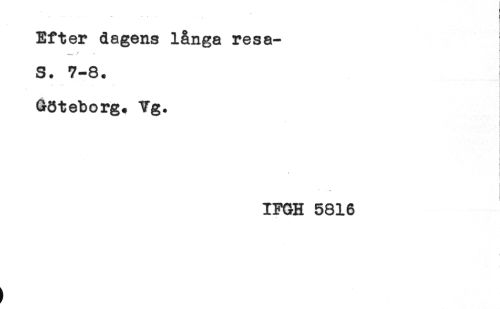 //// - - - . //// Efter dagens långa resa- //// -i- ** * //// S. 7-8. //// K -- . //// Göteborg. Vg. //// IFGH 5816 ////