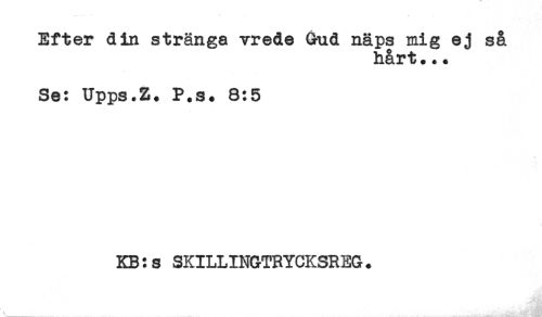//// Efter din stränga vrede Gud näps mig ej så //// hårt... //// Se: Upps.Z. P.s* 8:5 //// KB:s SKILLINGTRYCKSREG * ////