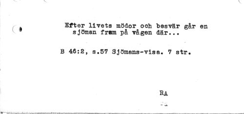 //// Efter livets mödor och besvär går en //// sjöman fram på vågen där... //// B 46:2, s.57 Sjömans-visa. 7 str. //// ) //// RA //// -.--^-----4 r --/.<- „',,-,....-. . , ^ .....-____,____- _____ __ ////