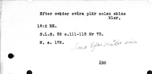 //// ......v . . . ^ //// Efter oväder svåra plär solen skina //// klar, //// 16:2 RE. //// * //// S.L.S. 52 s.111-113 Nr 73. //// < * //// N. s. 172. ^^ ////