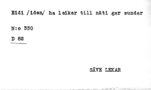 //// Eidi /iden/ ha laikar till näti gar sundar //// N:o 330 //// D 82 //// SÅVE LEKAR ////