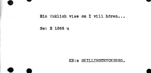//// Bin Ynklioh vise om I vill hören... //// - //// Se: E 1866 u //// KB:s SKILLINGTRYCKSREG. ////