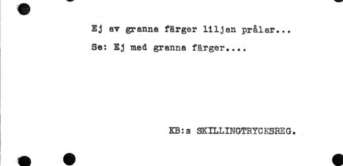 //// Ej av granna färger liljan prålar... //// Se: Ej med granna färger.... //// * //// KB:s SKILLINGTRYCKSREG. ////