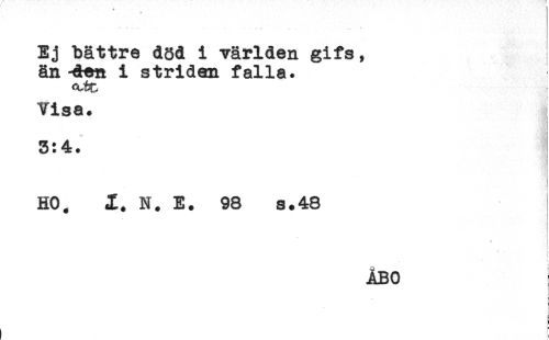 //// Ej bättre dsd i världen gifs, //// än -dea i stridem falla. //// i //// Visa. //// ! //// HO. I. N. E. 98 S.48 //// ÅBO //// t ^ ////