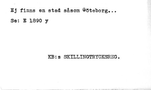 //// Ej finns en stad såsom Geteborg... //// Se: E 1890 y //// KB:s SKILLINGTRYCKSREG. ////