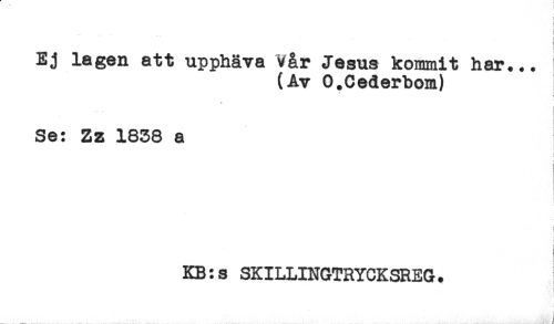 //// t //// ! //// i //// Ej lagen att upphäva Vår Jesus koimait har... //// (Av 0.Cederbom) //// t //// w //// * . //// Se: Zz 1838 a //// t //// ! //// < //// t //// j //// ] //// . ..... ////